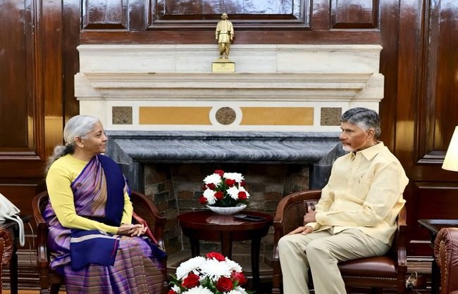 आंध्र प्रदेश के मुख्यमंत्री एन. चंद्रबाबू नायडू ने केंद्रीय वित्त मंत्री निर्मला सीतारमण से नार्थ ब्लॉक स्थित कार्यालय में मुलाकात की। इस मुलाकात के दौरान चंद्रबाबू ने राज्य से जुड़े कई लंबित मुद्दों पर चर्चा की और वित्तीय सहायता का अनुरोध किया। चर्चा के दौरान उठाए गए प्रमुख मुद्दों में अमरावती के लिए हुडको ऋण और विश्व बैंक से वित्त पोषण शामिल थे।