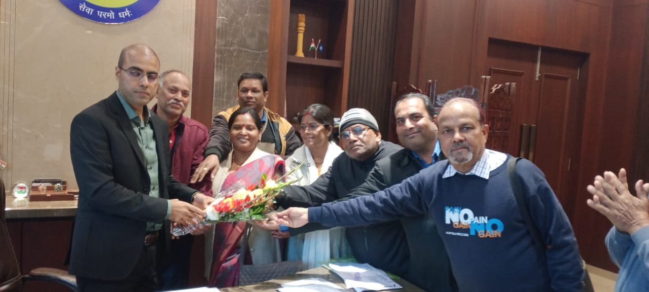 रांची : झारखंड सिटिजन फोरम के संयोजक अभिषेक श्रीवास्तव के नेतृत्व मे एक प्रतिनिधिमंडल नगर प्रशासक से मिलकर पहले गुलदस्ता देकर नया साल का शुभकामनायें दी तथा वार्डो के समस्याओ पर चर्चा किया साथ ही नागरिको की समस्याओ के समाधान मे उन्हें सहयोग करने का आश्वासन भी दिया l उन्होंने सभी को धन्यवाद देते हुए साप्ताह मे एक दिन बृहस्पतिवार को मिलने का समय दिया जिसमें फोरम 53 वार्डो के नागरिको से आए शिकायत पर निदान के लिए चर्चा करेगे l