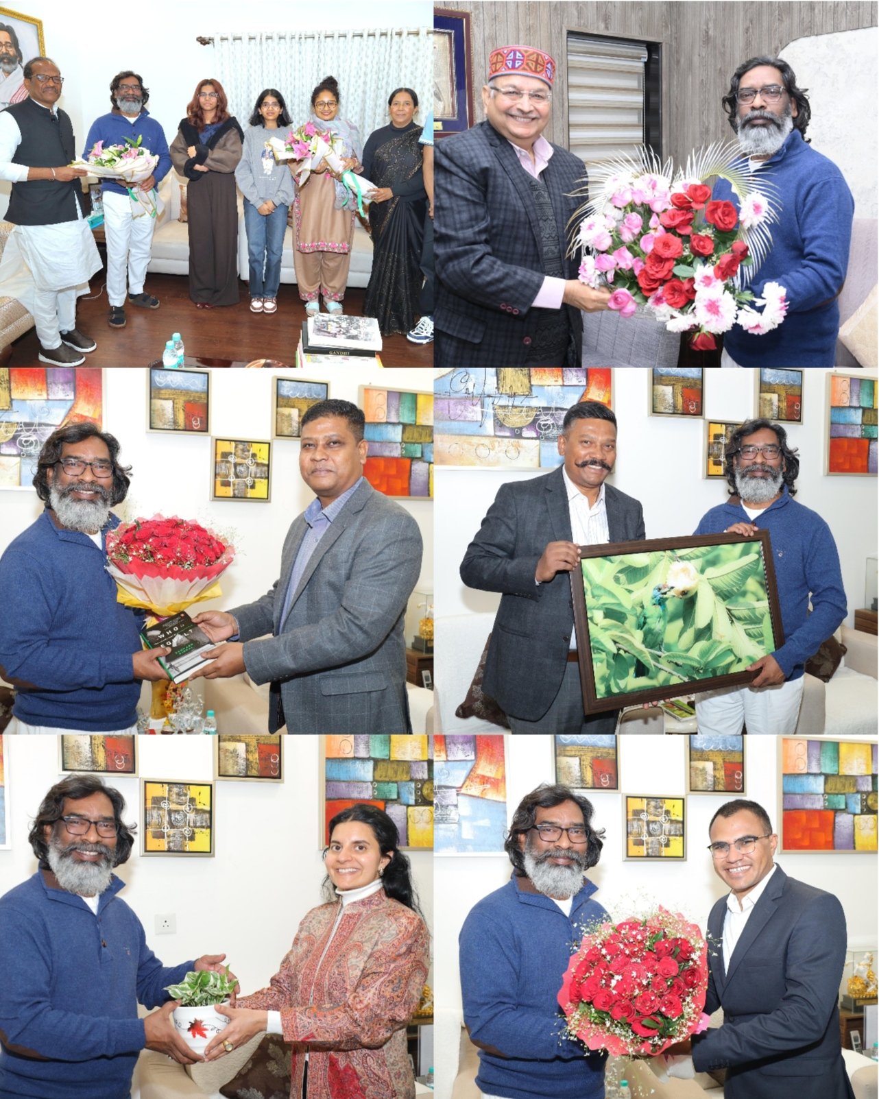 दूसरी ओर, मुख्यमंत्री से झारखंड भू-संपदा अपीलीय न्यायाधिकरण के चेयरमैन जस्टिस बीबी मंगलमूर्ति ने भेंट कर नव वर्ष की बधाई एवं शुभकामनाएं दी। मुख्यमंत्री ने भी उन्हें नए वर्ष की बधाई और शुभकामनाएं दी। इसके अलावा मुख्यमंत्री से पश्चिमी सिंहभूम के उपायुक्त कुलदीप चौधरी, लातेहार के उपायुक्त उत्कर्ष गुप्ता, विशेष शाखा के पुलिस उप महानिरीक्षक अनुरंजन किस्पोट्टा, पुलिस अधीक्षक नाथूराम मीणा, पुलिस अधीक्षक मूमल राजपुरोहित, पुलिस अधीक्षक मनीष टोप्पो ने शिष्टाचार मुलाकात कर नव वर्ष की बधाई एवं शुभकामनाएं दी। मुख्यमंत्री ने भी सभी को नूतन वर्ष की शुभकामनाएं दी।