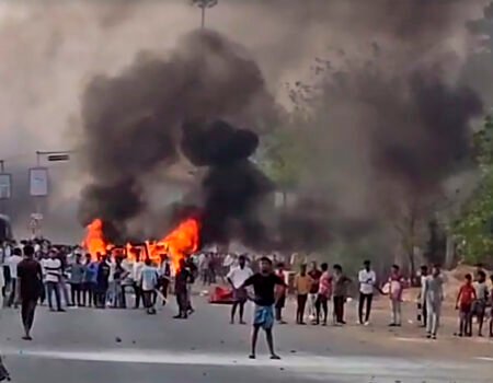 वक्फ कानून पर हिंसा-24 परगना में पुलिस की गाड़ियां जलाईं:8 घंटे से हाईवे जाम; मुर्शिदाबाद में हालात सुधरे,19 विस्थापित परिवार वापस लौटे