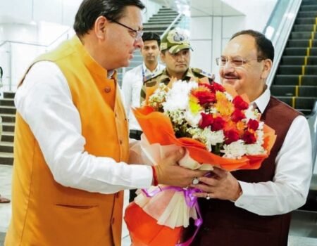 केंद्रीय स्वास्थ्य मंत्री नड्डा पहुंचे उत्तराखंड, मुख्यमंत्री ने एयरपोर्ट पर किया स्वागत