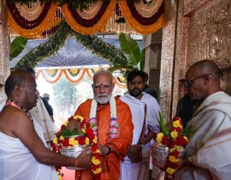 অন্ধ্রপ্রদেশে সফরে প্রধানমন্ত্রী, পুজো দিলেন শ্রী ভ্রমরম্ব মল্লিকার্জুন স্বামী ভারলা দেবস্থানমে