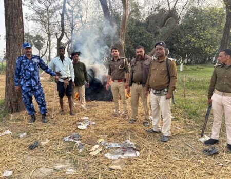 पुलिस ने चार हजार लीटर अर्धनिर्मित शराब किया नष्ट