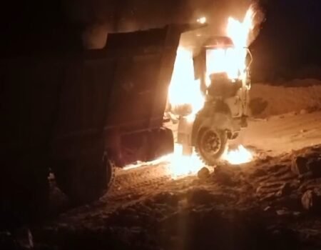 पत्थर लेने जा रहे हाइवा में अपराधियों ने लगाई आग