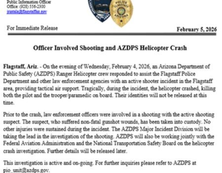 Helicopter crash in Flagstaff, Arizona, USA, kills two including pilot