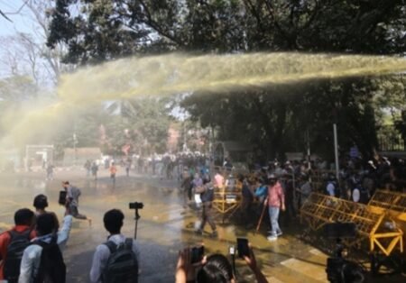 Police use water cannon to disperse protest by government workers in Bangladesh