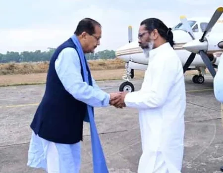 मुख्यमंत्री हेमंत सोरेन ने आज बिरसा मुंडा एयरपोर्ट के स्टेट हैंगर में राज्य के वित्त मंत्री राधाकृष्ण किशोर से मुलाकात की।