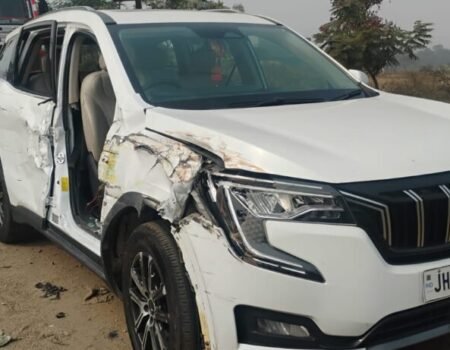 रांची-टाटा हाईवे पर कांची पुल के पास राजा पीटर की गाड़ी दुर्घटनाग्रस्त