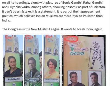 कांग्रेस के पोस्टर में भारत का गलत नक्शा