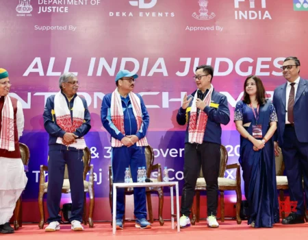 সকাল সকাল ডেস্ক নয়াদিল্লি : দিল্লির ত্যাগরাজ স্টেডিয়ামে আয়োজিত হয়েছে অল ইন্ডিয়া জাজেস ব্যাডমিন্টন চ্যাম্পিয়নশিপ। শনিবার এই প্রতিযোগিতায় অংশ নেন প্রধান বিচারপতি সূর্য কান্ত। এছাড়াও কেন্দ্রীয় মন্ত্রী কিরেন রিজিজু এবং অর্জুন রাম মেঘওয়াল প্রতিযোগিতায় অংশগ্রহণ করেছেন। প্রধান বিচারপতি বলেন, “বিচারকদের কাজের ধরণ খুবই চাপপূর্ণ। সকল বিচারকের উচিত বিনোদনমূলক কার্যকলাপে অংশগ্রহণ করা এবং এটিকে অভ্যাসে পরিণত করা। প্রায় ৭৫ জন হাইকোর্টের বিচারক এখানে অংশগ্রহণ করতে এসেছেন। এটি দেখায় যে বিচারকরা তাঁদের মানসিক এবং শারীরিক সুস্থতা সম্পর্কে সচেতন।” কেন্দ্রীয় মন্ত্রী কিরেন রিজিজু বলেছেন, “শুধু ব্যাডমিন্টন নয়, সুপ্রিম কোর্ট বিচারকদের জন্য আরও এই ধরণের ক্রীড়া প্রতিযোগিতার আয়োজন করবে। সুপ্রিম কোর্ট এবং হাইকোর্টের অনেক বিচারক এখানে এসেছেন, যা পরিবেশকে অত্যন্ত আনন্দিত করে তুলেছে। বহু বছর ধরে অল ইন্ডিয়া জাজেস ব্যাডমিন্টন চ্যাম্পিয়নশিপ চলছে।” কেন্দ্রীয় মন্ত্রী অর্জুন রাম মেঘওয়াল বলেন, “আইন ও বিচার মন্ত্রক অল ইন্ডিয়া জাজেস ব্যাডমিন্টন চ্যাম্পিয়নশিপের অনুমতি দিয়েছে, প্রাক্তন প্রধান বিচারপতি বি আর গাভাই এতে সম্মতি দিয়েছেন। এটি একটি ভালো উদ্যোগ। বিচারকরা সকলকে ফিটনেসের একটি ভালো বার্তা দিচ্ছেন।”