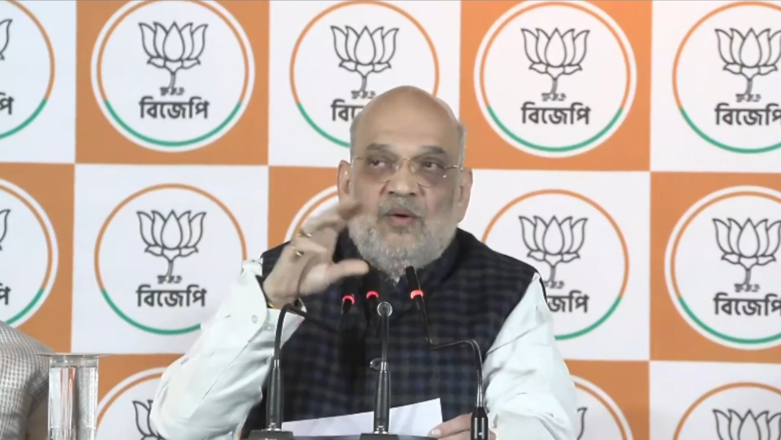 কলকাতা : তৃণমূলের শাসনে বাংলার মানুষ ভীত সন্ত্রস্ত| কলকাতায় এসে এক সাংবাদিক সম্মেলনে জানালেন অমিত শাহ| তিনি এদিন বলেন, ভয় দুর্নীতি আর অনুপ্রবেশের জায়গায় বিকাশ এবং গরীব কল্যাণের জন্য সরকার বানানোর সংকল্প দেখা যাচ্ছে পশ্চিমবঙ্গের মানুষদের মধ্যে। তৃণমূলের শাসনে বাংলার মানুষ ভীত সন্ত্রস্ত। আমরা বিজেপির সব কার্যকর্তা আশ্বাস দিচ্ছি বাংলায় প্রধানমন্ত্রী নরেন্দ্র মোদীর নেতৃত্বে বিজেপি সরকার গঠনের পর এখানে দুর্নীতি, অনুপ্রবেশ বন্ধ হবে এবং গরীব কল্যাণ হবে। এর পাশাপাশি মজবুত প্রশাসন তৈরি হবে যা অনুপ্রবেশ রুখে দেবে। মানুষ তো দূর একটা পাখিও ঢুকতে পারবে না। শুধু অনুপ্রবেশ বন্ধই করব না, সব অনুপ্রবেশকারীদের চিহ্নিত করে বের করে। তৃণমূলের নেতৃত্বে আজ বাংলার বিকাশ থেমে গেছে। পুরো দেশে যে বিকাশ হচ্ছে সেটা এই রাজ্যে কাটমানির কারণে বন্ধ হয়ে আছে। আমাদের সংকল্প ১৫ এপ্রিল ২০২৬ এর পর যখন বিজেপি সরকার হবে তখন পশ্চিমবঙ্গের হৃত গৌরব আমরা পুনরুদ্ধার করব। বাংলার মনিষীদের স্বপ্নের বাংলা আমরা তৈরি করব। বিজেপির বীজ বপন হয়েছিল জনসংঘ থেকে। জনসংঘ স্থাপন করেছিলেন ড. শ্যামাপ্রসাদ মুখোপাধ্যায়।