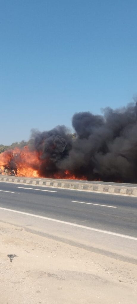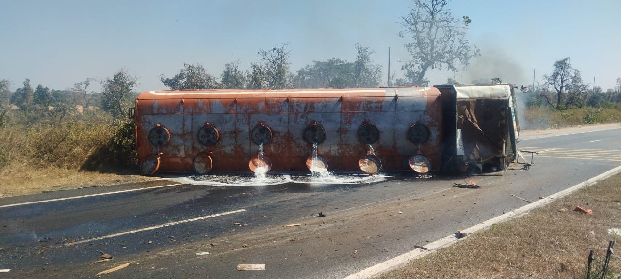 रांची। नामकुम थाना क्षेत्र अंतर्गत टाटा-रांची मार्ग के रायसा मोड़ के पास तेल टैंकर अनियंत्रित होकर पलट गया। पलटने के बाद गाड़ी में आग लग गयी। देखते ही देखते टैंकर से सारा तेल निकलने लगा।