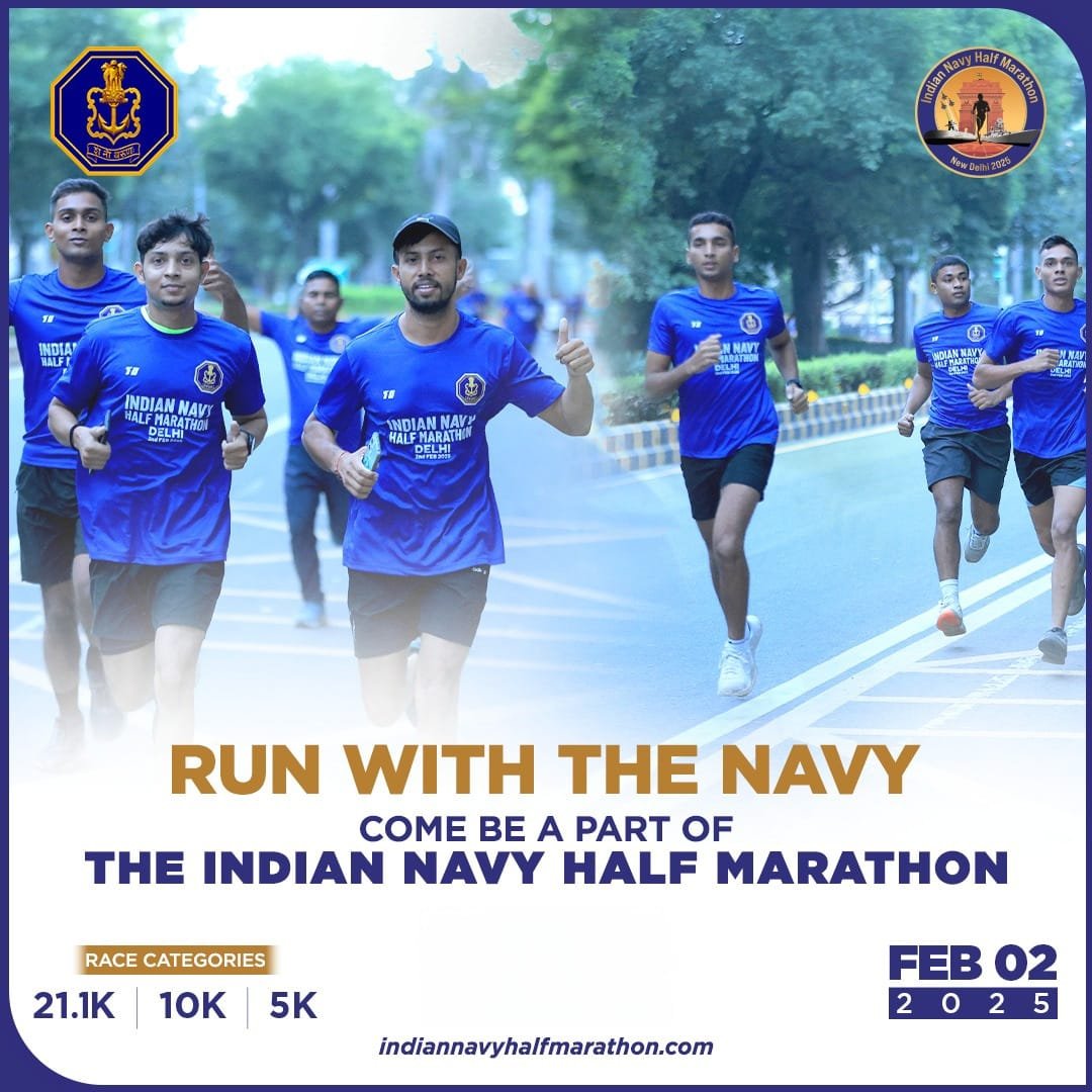 नई दिल्ली। भारतीय नौसेना 2 फरवरी को राजधानी नई दिल्ली में इंडियन नेवी हाफ मैराथन (आईएनएचएम) के उद्घाटन संस्करण की मेजबानी करने जा रही है। जवाहरलाल नेहरू स्टेडियम से शुरू होने वाली इस मैराथन में 21.1 किमी, 10 किमी और 5 किमी की तीन श्रेणियों में दस हजार से अधिक धावकों के भाग लेने की उम्मीद है। इस ऐतिहासिक आयोजन को आईडीएफसी फर्स्ट बैंक के सहयोग से आयोजित किया जा रहा है। प्रतियोगिता का मार्ग देश की राजधानी के प्रतिष्ठित स्थलों से होकर गुजरेगा, जिसमें कर्तव्य पथ और इंडिया गेट शामिल हैं। इसका उद्घाटन केंद्रीय खेल एवं युवा मामलों के मंत्री मनसुख मंडाविया द्वारा हरी झंडी दिखाकर किया जाएगा। इसके अलावा इसमें सशस्त्र बलों के वरिष्ठ अधिकारी, प्रतिष्ठित हस्तियां, नागरिक अतिथि और प्रसिद्ध खिलाड़ी भी भाग लेंगे।