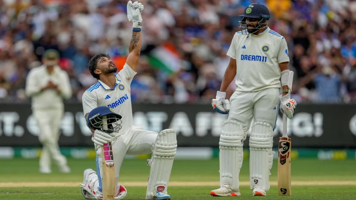 नीतीश रेड्डी के शतक के दम पर भारत ने बॉर्डर-गावस्कर ट्रॉफी के चौथे मुकाबले में ऑस्ट्रेलिया के खिलाफ वापसी कर ली है। एक समय उस पर फॉलोऑन खेलने का खतरा मंडरा रहा था। फिलहाल, टीम 116 रन से पीछे है। भारत ने मेलबर्न में शनिवार को तीसरे दिन स्टंप्स तक पहली पारी में 9 विकेट पर 358 रन बनाए। नीतीश रेड्डी 105 और मोहम्मद सिराज 2 रन पर नाबाद हैं।
