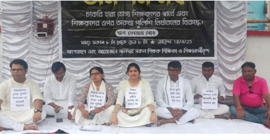 मालदा। योग्य शिक्षकों की बहाली की मांग और शिक्षकों पर पुलिस अत्याचार के विरोध में मालदा जिले के शिक्षाकर्मियों के एक समूह ने भूख हड़ताल शुरू कर दी है। शुक्रवार की सुबह शिक्षकों ने मालदा शहर के पोस्ट ऑफिस मोड़ पर एक अस्थायी शिविर स्थापित कर विरोध प्रदर्शन में शामिल हुए।